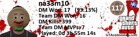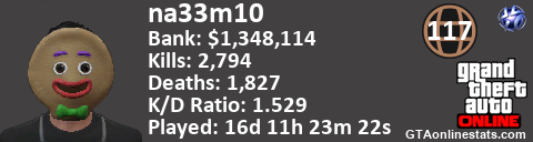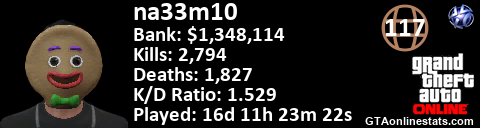 <a href="http://GTAonlinestats.com/showplayer/na33m10"><img src="http://GTAonlinestats.com/dmsignature/na33m10/sig.png" alt="na33m10" border="0" /></a>