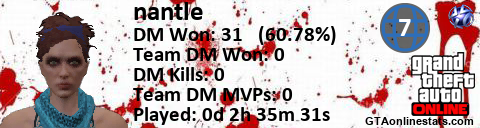 [URL=http://GTAonlinestats.com/showplayer/nantle/2][IMG]http://GTAonlinestats.com/dmsignature/nantle/2/sig.png[/IMG][/URL]