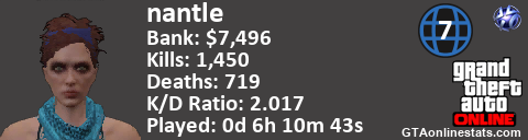 <a href="http://GTAonlinestats.com/showplayer/nantle/2"><img src="http://GTAonlinestats.com/signature/nantle/2/sig.png" alt="nantle" border="0" /></a>