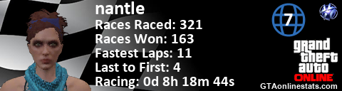 <a href="http://GTAonlinestats.com/showplayer/nantle/2"><img src="http://GTAonlinestats.com/racesignature/nantle/2/sig.png" alt="nantle" border="0" /></a>
