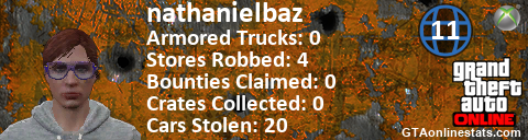 [URL=http://GTAonlinestats.com/showplayer/nathanielbaz][IMG]http://GTAonlinestats.com/randomsignature/nathanielbaz/sig.png[/IMG][/URL]