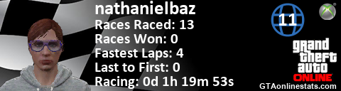 [URL=http://GTAonlinestats.com/showplayer/nathanielbaz][IMG]http://GTAonlinestats.com/racesignature/nathanielbaz/sig.png[/IMG][/URL]