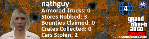 <a href="http://GTAonlinestats.com/showplayer/nathguy/2"><img src="http://GTAonlinestats.com/crimesignature/nathguy/2/sig.png" alt="nathguy" border="0" /></a>
