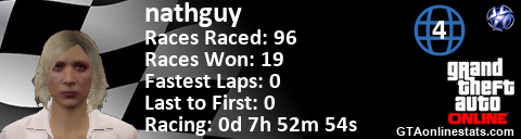 <a href="http://GTAonlinestats.com/showplayer/nathguy/2"><img src="http://GTAonlinestats.com/racesignature/nathguy/2/sig.png" alt="nathguy" border="0" /></a>