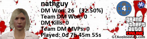 [URL=http://GTAonlinestats.com/showplayer/nathguy/2][IMG]http://GTAonlinestats.com/dmsignature/nathguy/2/sig.png[/IMG][/URL]