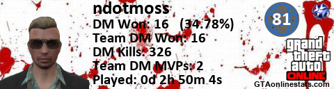 [URL=http://GTAonlinestats.com/showplayer/ndotmoss][IMG]http://GTAonlinestats.com/dmsignature/ndotmoss/sig.png[/IMG][/URL]