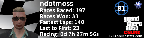 [URL=http://GTAonlinestats.com/showplayer/ndotmoss][IMG]http://GTAonlinestats.com/racesignature/ndotmoss/sig.png[/IMG][/URL]