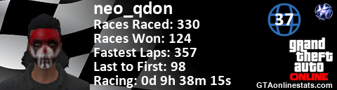 <a href="http://GTAonlinestats.com/showplayer/neo_qdon"><img src="http://GTAonlinestats.com/racesignature/neo_qdon/sig.png" alt="neo_qdon" border="0" /></a>