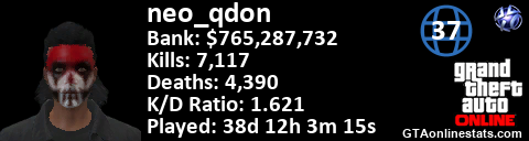 <a href="http://GTAonlinestats.com/showplayer/neo_qdon"><img src="http://GTAonlinestats.com/randomsignature/neo_qdon/sig.png" alt="neo_qdon" border="0" /></a>