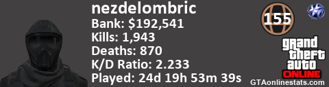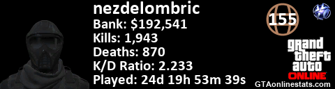 <a href="http://GTAonlinestats.com/showplayer/nezdelombric"><img src="http://GTAonlinestats.com/dmsignature/nezdelombric/sig.png" alt="nezdelombric" border="0" /></a>