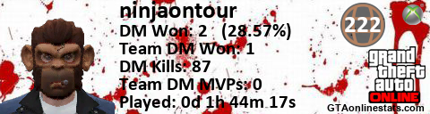 [URL=http://GTAonlinestats.com/showplayer/ninjaontour][IMG]http://GTAonlinestats.com/dmsignature/ninjaontour/sig.png[/IMG][/URL]