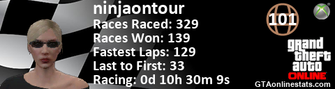 [URL=http://GTAonlinestats.com/showplayer/ninjaontour/2][IMG]http://GTAonlinestats.com/racesignature/ninjaontour/2/sig.png[/IMG][/URL]