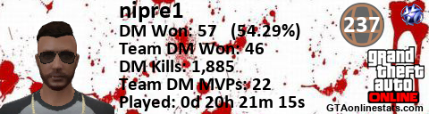<a href="http://GTAonlinestats.com/showplayer/nipre1"><img src="http://GTAonlinestats.com/randomsignature/nipre1/sig.png" alt="nipre1" border="0" /></a>
