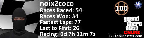 [URL=http://GTAonlinestats.com/showplayer/noix2coco][IMG]http://GTAonlinestats.com/racesignature/noix2coco/sig.png[/IMG][/URL]