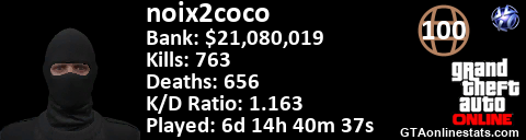 <a href="http://GTAonlinestats.com/showplayer/noix2coco"><img src="http://GTAonlinestats.com/randomsignature/noix2coco/sig.png" alt="Noix2coco" border="0" /></a>