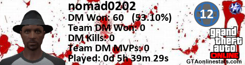 <a href="http://GTAonlinestats.com/showplayer/nomad0202/3"><img src="http://GTAonlinestats.com/dmsignature/nomad0202/3/sig.png" alt="nomad0202" border="0" /></a>