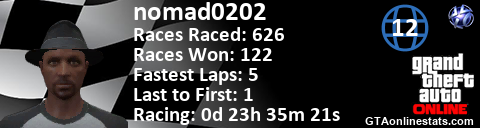 <a href="http://GTAonlinestats.com/showplayer/nomad0202/3"><img src="http://GTAonlinestats.com/racesignature/nomad0202/3/sig.png" alt="nomad0202" border="0" /></a>