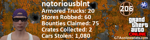 [URL=http://GTAonlinestats.com/showplayer/notoriousblnt][IMG]http://GTAonlinestats.com/randomsignature/notoriousblnt/sig.png[/IMG][/URL]