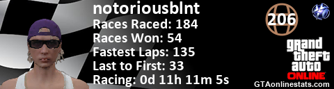 [URL=http://GTAonlinestats.com/showplayer/notoriousblnt][IMG]http://GTAonlinestats.com/racesignature/notoriousblnt/sig.png[/IMG][/URL]