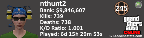 [URL=http://GTAonlinestats.com/showplayer/nthunt2][IMG]http://GTAonlinestats.com/signature/nthunt2/sig.png[/IMG][/URL]