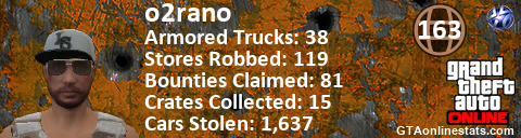 [URL=http://GTAonlinestats.com/showplayer/o2rano][IMG]http://GTAonlinestats.com/crimesignature/o2rano/sig.png[/IMG][/URL]