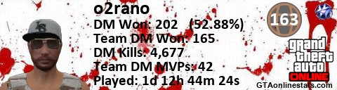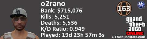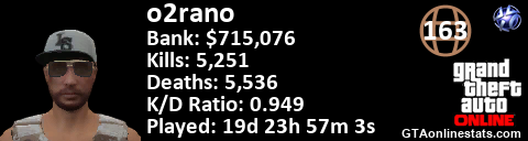 <a href="http://GTAonlinestats.com/showplayer/o2rano"><img src="http://GTAonlinestats.com/dmsignature/o2rano/sig.png" alt="o2rano" border="0" /></a>