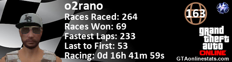 [URL=http://GTAonlinestats.com/showplayer/o2rano][IMG]http://GTAonlinestats.com/racesignature/o2rano/sig.png[/IMG][/URL]