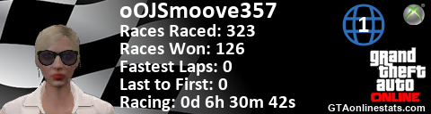 <a href="http://GTAonlinestats.com/showplayer/oOJSmoove357/2"><img src="http://GTAonlinestats.com/racesignature/oOJSmoove357/2/sig.png" alt="oOJSmoove357" border="0" /></a>