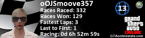 <a href="http://GTAonlinestats.com/showplayer/oOJSmoove357/3"><img src="http://GTAonlinestats.com/racesignature/oOJSmoove357/3/sig.png" alt="oOJSmoove357" border="0" /></a>