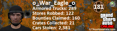 <a href="http://GTAonlinestats.com/showplayer/o_War_Eagle_o"><img src="http://GTAonlinestats.com/dmsignature/o_War_Eagle_o/sig.png" alt="o_War_Eagle_o" border="0" /></a>