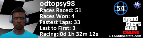 <a href="http://GTAonlinestats.com/showplayer/odtopsy98"><img src="http://GTAonlinestats.com/racesignature/odtopsy98/sig.png" alt="odtopsy98" border="0" /></a>