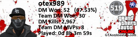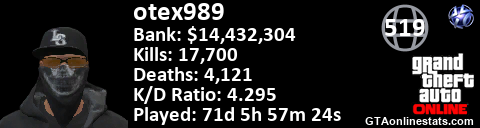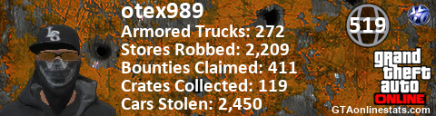 [URL=http://GTAonlinestats.com/showplayer/otex989][IMG]http://GTAonlinestats.com/signature/otex989/sig.png[/IMG][/URL]