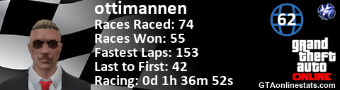 [URL=http://GTAonlinestats.com/showplayer/ottimannen][IMG]http://GTAonlinestats.com/racesignature/ottimannen/sig.png[/IMG][/URL]