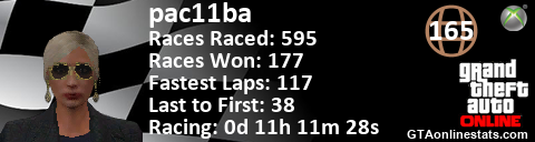 <a href="http://GTAonlinestats.com/showplayer/pac11ba"><img src="http://GTAonlinestats.com/racesignature/pac11ba/sig.png" alt="pac11ba" border="0" /></a>