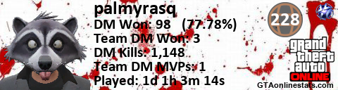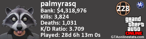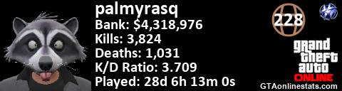 [URL=http://GTAonlinestats.com/showplayer/palmyrasq][IMG]http://GTAonlinestats.com/randomsignature/palmyrasq/sig.png[/IMG][/URL]