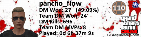 [URL=http://GTAonlinestats.com/showplayer/pancho_flow][IMG]http://GTAonlinestats.com/dmsignature/pancho_flow/sig.png[/IMG][/URL]