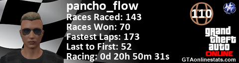 <a href="http://GTAonlinestats.com/showplayer/pancho_flow"><img src="http://GTAonlinestats.com/racesignature/pancho_flow/sig.png" alt="pancho_flow" border="0" /></a>