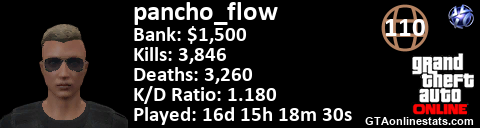 <a href="http://GTAonlinestats.com/showplayer/pancho_flow"><img src="http://GTAonlinestats.com/dmsignature/pancho_flow/sig.png" alt="pancho_flow" border="0" /></a>