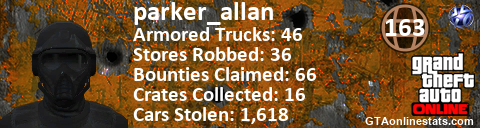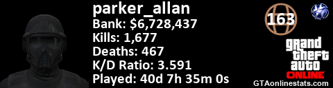 [URL=http://GTAonlinestats.com/showplayer/parker_allan][IMG]http://GTAonlinestats.com/randomsignature/parker_allan/sig.png[/IMG][/URL]
