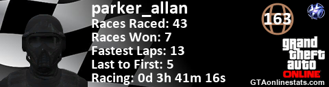 <a href="http://GTAonlinestats.com/showplayer/parker_allan"><img src="http://GTAonlinestats.com/racesignature/parker_allan/sig.png" alt="parker_allan" border="0" /></a>
