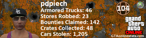 <a href="http://GTAonlinestats.com/showplayer/pdpiech"><img src="http://GTAonlinestats.com/randomsignature/pdpiech/sig.png" alt="pdpiech" border="0" /></a>