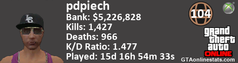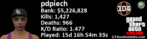 <a href="http://GTAonlinestats.com/showplayer/pdpiech"><img src="http://GTAonlinestats.com/signature/pdpiech/sig.png" alt="pdpiech" border="0" /></a>