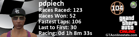<a href="http://GTAonlinestats.com/showplayer/pdpiech"><img src="http://GTAonlinestats.com/racesignature/pdpiech/sig.png" alt="pdpiech" border="0" /></a>