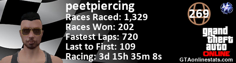 <a href="http://GTAonlinestats.com/showplayer/peetpiercing"><img src="http://GTAonlinestats.com/racesignature/peetpiercing/sig.png" alt="peetpiercing" border="0" /></a>
