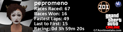 <a href="http://GTAonlinestats.com/showplayer/pepromeno"><img src="http://GTAonlinestats.com/racesignature/pepromeno/sig.png" alt="pepromeno" border="0" /></a>