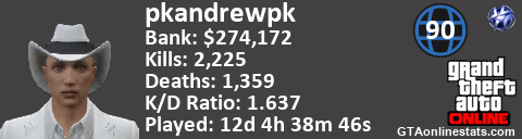 <a href="http://GTAonlinestats.com/showplayer/pkandrewpk"><img src="http://GTAonlinestats.com/dmsignature/pkandrewpk/sig.png" alt="pkandrewpk" border="0" /></a>