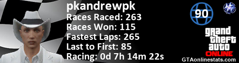 <a href="http://GTAonlinestats.com/showplayer/pkandrewpk"><img src="http://GTAonlinestats.com/racesignature/pkandrewpk/sig.png" alt="pkandrewpk" border="0" /></a>