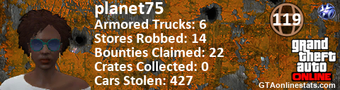 [URL=http://GTAonlinestats.com/showplayer/planet75/2][IMG]http://GTAonlinestats.com/crimesignature/planet75/2/sig.png[/IMG][/URL]