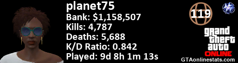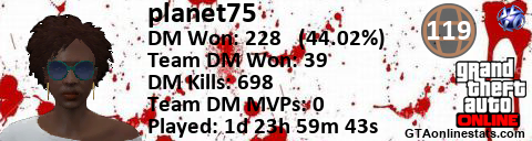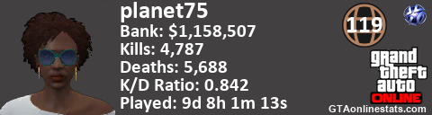 [URL=http://GTAonlinestats.com/showplayer/planet75/2][IMG]http://GTAonlinestats.com/dmsignature/planet75/2/sig.png[/IMG][/URL]