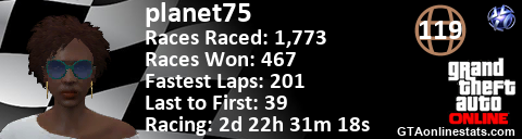 [URL=http://GTAonlinestats.com/showplayer/planet75/2][IMG]http://GTAonlinestats.com/racesignature/planet75/2/sig.png[/IMG][/URL]
